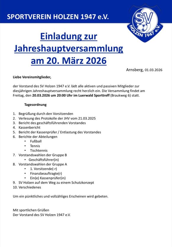 Ihr wollt auch im Verein Fußball, Tennis oder Tischtennis spielen? Schaut einfach währen der Trainingszeiten am Sportplatz, der Tennisanlage und/oder der Sporthalle vorbei und macht Euch ein Bild vom Vereinsleben.